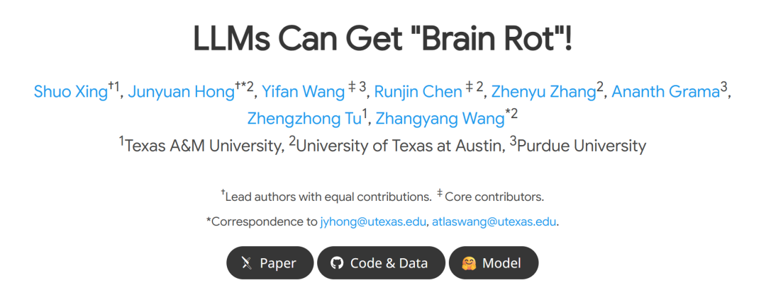 首先,大模型确实和人类一样存在“脑损伤(Brain Rot)”问题。