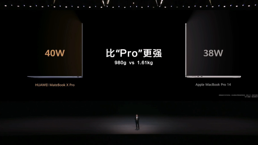 MateBook X Pro重量仅980g,屏幕是14.2英寸屏幕,比苹果MacBook Air的13.6英寸屏幕更大,但它的重量低于其1.24公斤。它甚至比11英寸、1.06公斤的苹果iPad Pro还轻。