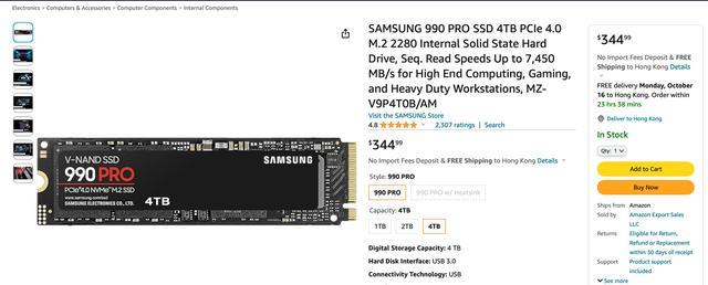 三星990 PRO SSD 4TB版海外开卖,售价345美元起