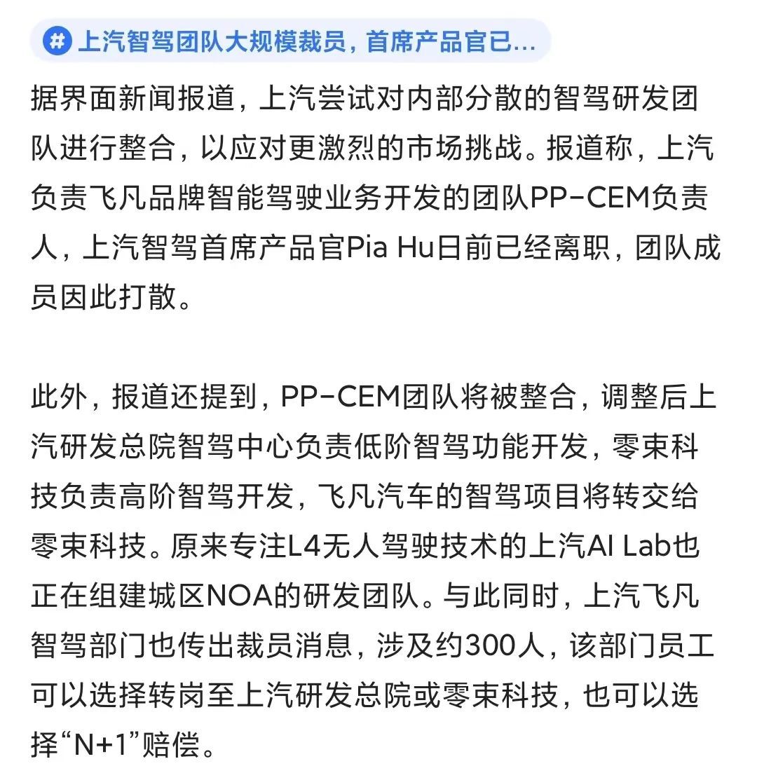 觉得智驾是灵魂的上汽,竟然把飞凡的智驾团队裁了…