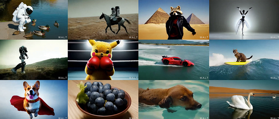 W.A.L.T模型目前支持文生视频、图片转视频和3D相机拍摄视频三项能力,团队展示了一系列W.A.L.T的生成示例。