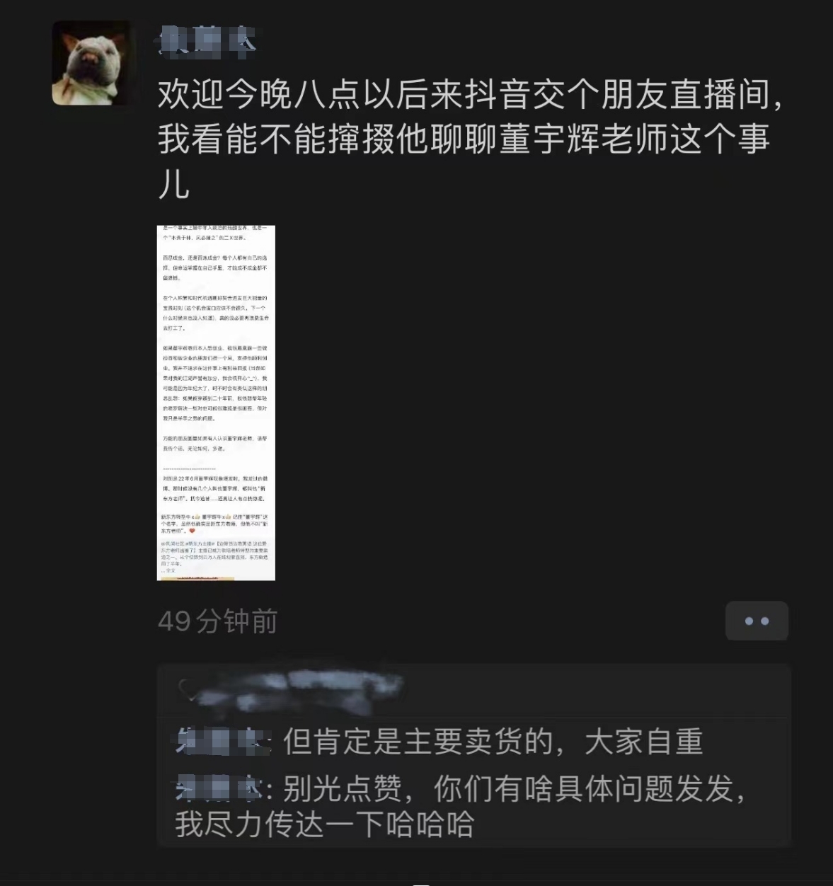 我还是那句话,东方甄选一定会去董宇辉化的,但去董宇辉化,不代表要干掉董宇辉,而是公司营收系统稳定的需要,这意味着东方甄选是绝对容得下董宇辉的。
