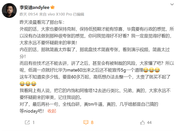 IT之家注意到,视频中的车型为小米 SU7 Max,车身颜色为白色,电动尾翼处于关闭状态,得益于溜背式设计整体呈现低趴风格,侧面采用隐藏式门把手设计,线条流畅,轮毂采用黄色卡钳。
